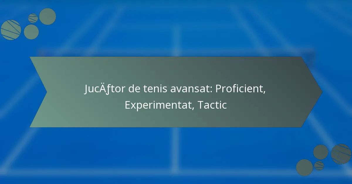 Un jucător avansat de tenis este caracterizat printr-un nivel ridicat de competență, experiență vastă în meciuri și abilitatea de a formula și executa strategii tactice în timpul jocului. Acești jucători nu doar că dețin abilități tehnice, dar demonstrează și condiționare fizică și reziliență mentală, permițându-le să concureze eficient la niveluri superioare.