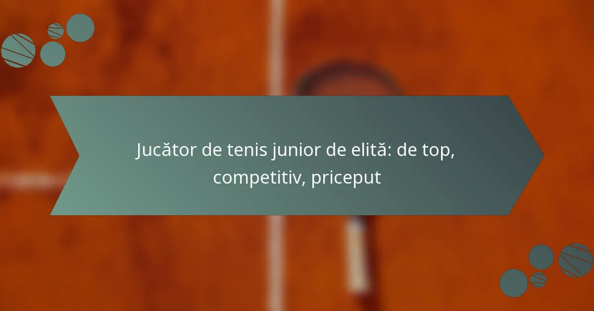 Un jucător de tenis junior de elită se caracterizează prin abilități excepționale, performanțe competitive și o fundație mentală și fizică puternică. Acești jucători obțin constant clasamente înalte și demonstrează un angajament față de antrenamente riguroase și competiții.