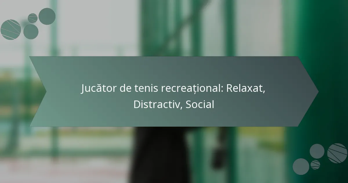 Un jucător de tenis recreațional este cineva care participă la tenis în principal pentru relaxare, distracție și interacțiune socială, mai degrabă decât pentru competiție. Acești jucători se angajează de obicei în meciuri casual și sesiuni de antrenament, concentrându-se pe distracție și fitness, mai degrabă decât pe metrici stricte de performanță.